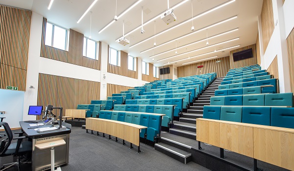 The extension to Lancaster University Management School (LUMS), named the ‘West Pavilion’, is a five-storey contemporary building which houses three new lecture theatres, two executive teaching suites and three floors of work space for academics and staff.