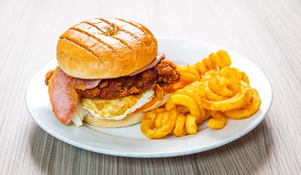 On-campus sports bar streaming live sports, serving specialty burgers, nachos, quesadillas, all-day breakfasts, and more.