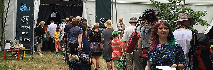 The Physics Pavilion was funded by WOMAD, Lancaster University, CERN, the Institute of Physics, and the Science and Technology Facilities Council.